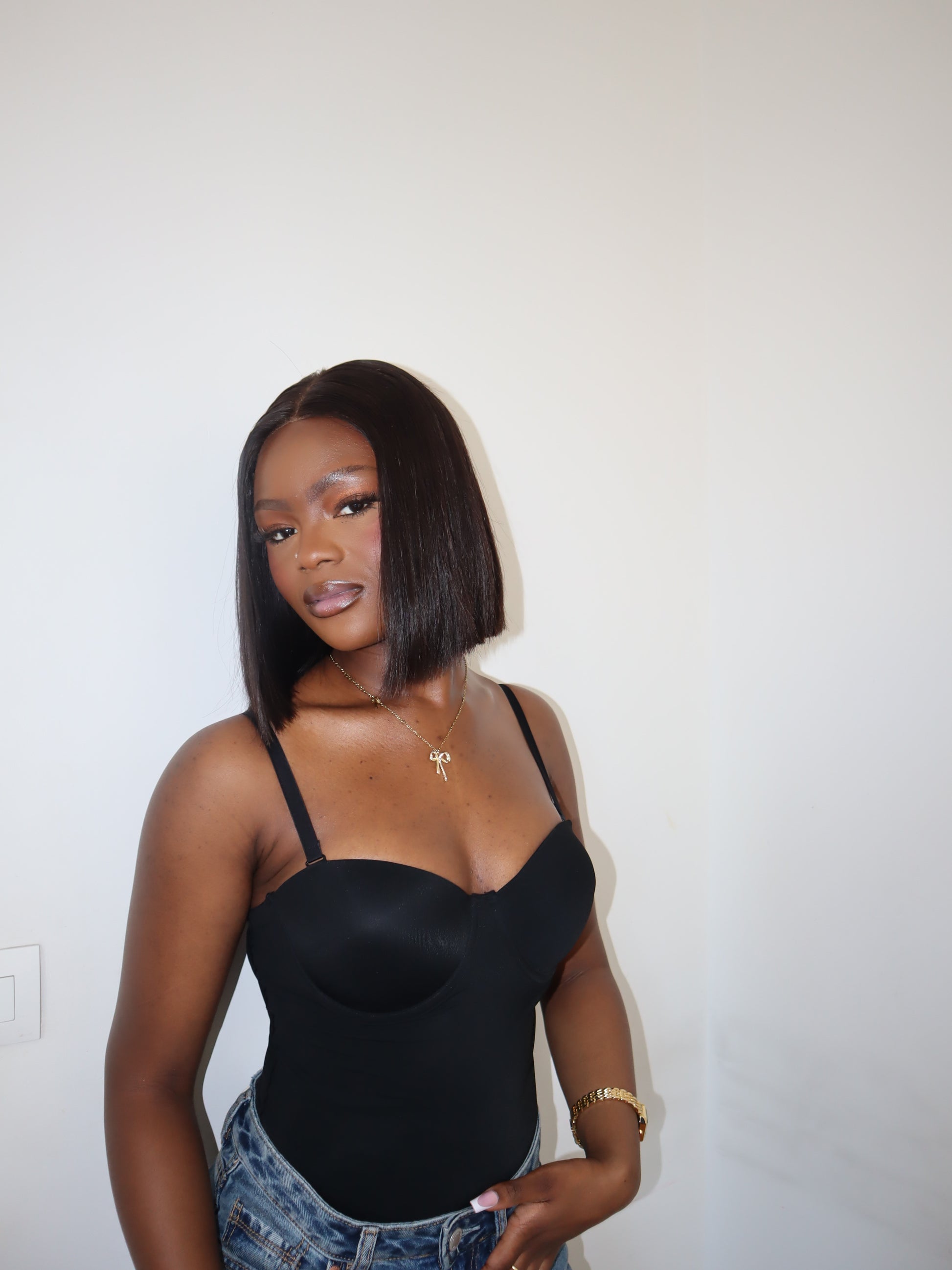 Notre Perruque Bobby ET PARFAITE, POUR ÊTRE APPRÊTÉE LE PLUS RAPIDEMENT POSSIBLE, ELLE ALLIE EFFICACITÉ ET RAPIDITÉ , C’est un modèle exclusivement 100 % RAW HAIR, avec une Closure 5 × 5 HD de 10 pouces, les mèches sont extrêmement fluides et la tule très bonne qualité.